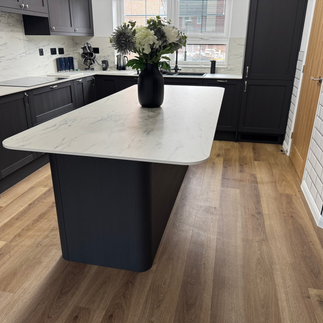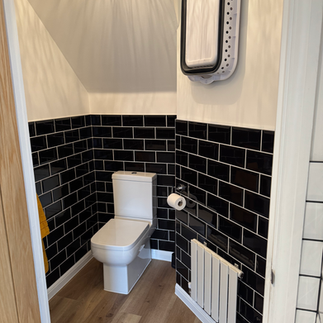 They chose the Ambleside range finished in Graphite with anthracite carcass's finished with a 12.5mm compact laminate worktop and a matching splash back, tiling of walls in kitchen, utility and WC, new skirting and architraves, new LPD Mexicano Oak doors throughout the house with new door ironmungry, new radiators in kitchen, dinning room and utility to complete this amazing transformation.