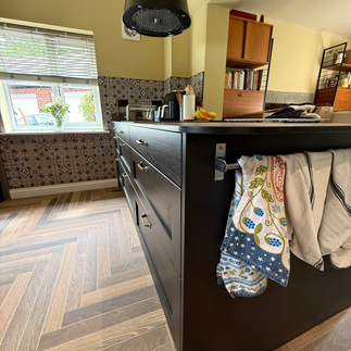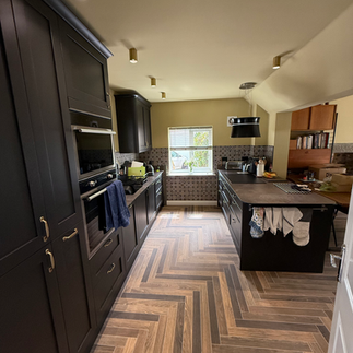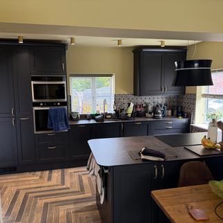Another Magnet kitchen fit over at Robinswood in Gloucester for a lovely couple on a couple of hundred year old house which had a few issues to overcome, we were tasked to remove the old tired kitchen and then take up all the floor tiles throughout the whole downstiars as we had to prepare the uneven floors ready for new parallel laid floor tiles & Skirting and then fit the new Magnet Wardley Kitchen which was finished in Sumi Black with Calderia Compact Laminate worktops
